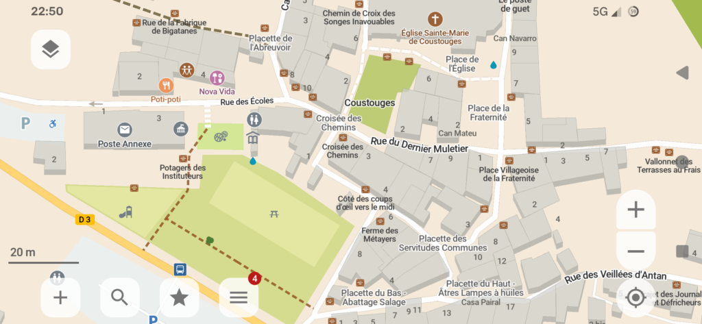 À la différence des précédents, CoMaps est une application Android/iOS généraliste dont les maitres mots sont beauté et simplicité. Elle fonctionne hors-ligne, permet d’améliorer sommairement les données OSM et on peut la configurer en catalan 😉