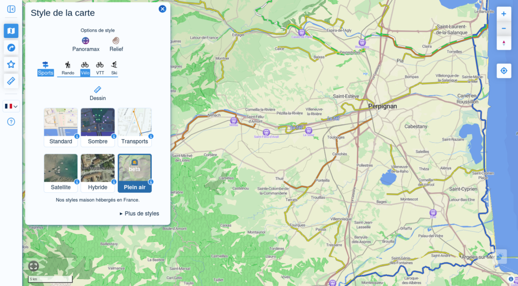 Dans les Pyrénées-Orientales, pour les données vélo, on peut remercier Rainer, ancien membre de Vélo en Têt qui a contribué à renseigner une bonne partie des aménagements, GeoVelo suite aux signalements de ses utilisateurices, ainsi que moi-même et des contributeurices de passage. Le département a aussi mis la main à la pâte financièrement en missionnant GeoVelo pour rajouter les données manquantes ou les consolider. C’est au département que l’on doit l’information des Accueils Vélo dans OSM.
