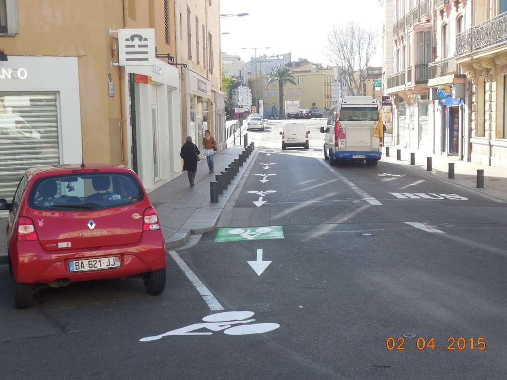 Suite à la décision de la cour d’appel de Marseille en faveur de Vélo En Têt en octobre dernier, la Ville vient d’aménager un parcours cyclable qui permet la jonction du quai Vauban vers la place de Catalogne, tronçon qui auparavant compliquait le parcours à vélo. Un marquage au sol vert indique le début de ce DSC qui est ensuite prolongé par les pictogrammes habituels.
