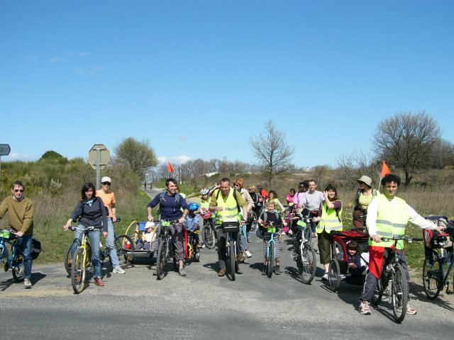 Parmi les enfants, certains sont autonomes, d’autres sont reliés au vélo parental , d’autres enfin, les plus petits sont confortablement installés dans une carriole tractée par le vélo de leurs parents. Dans cet équipage hétéroclite, nous ne passons pas inaperçu aux carrefours et aux traversées des routes !