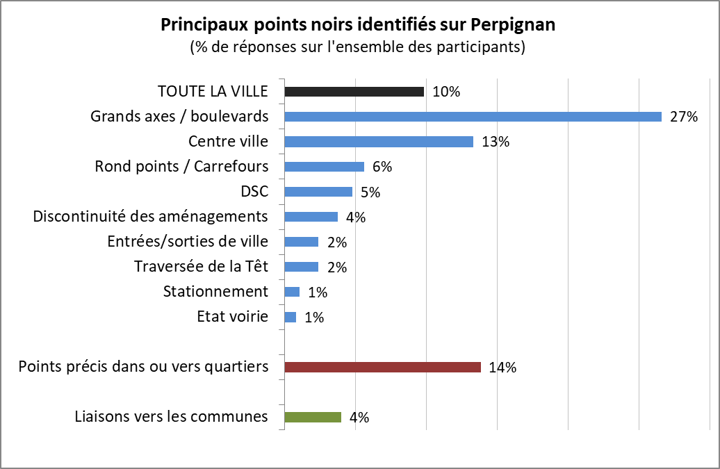 Nous avons également analysé les réponses à la question ouverte ‘quel est le principal point noir sur la ville’ :