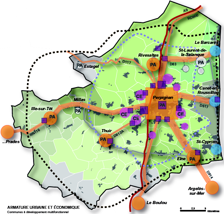 Le mode d’urbanisation de la plaine du Roussillon, parmi ses nombreux inconvénients, contribue en effet à l’augmentation des mobilités individuelles dont on sait qu’elles sont ultra majoritairement automobile. Le premier levier à exploiter semble donc être l’encadrement plus strict de l’urbanisation, levier à disposition du SCoT qui s’impose au PLU sur le mode de la compatibilité.