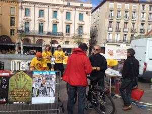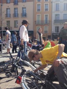 Vélo En Têt avec l’association étudiante Énergie Citoyenne, dans le cadre de la Semaine de l’Environnement , animait samedi 5 avril 2014 place de la République un atelier de réparation de vélos et une opération de gravage contre le vol : l’inscription sur la cadre du vélo d’un numéro figurant dans un fichier national (Bicycode) permet de lutter efficacement contre le vol de vélos.