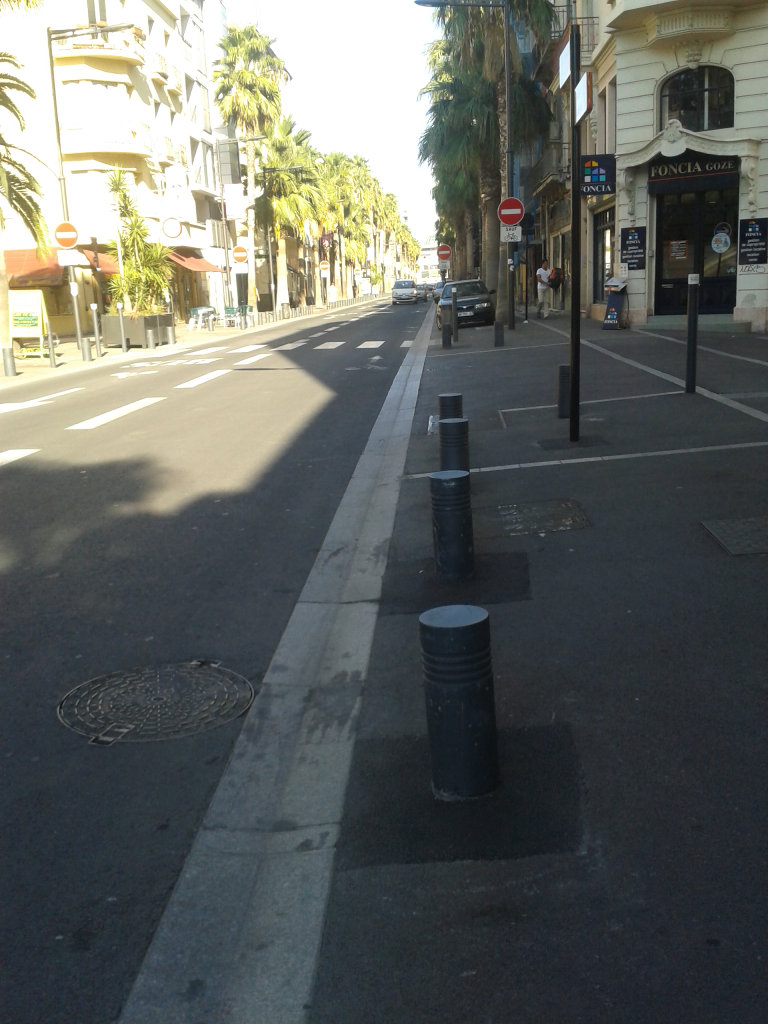 Rien n’indique aux automobilistes débouchant des rues à droite qu’ils peuvent rencontrer un vélo en DSC : aucun marquage au sol pour sécuriser le passage. Pourquoi pas une bande continue pour le DSC et un marquage vert aux intersections ?
