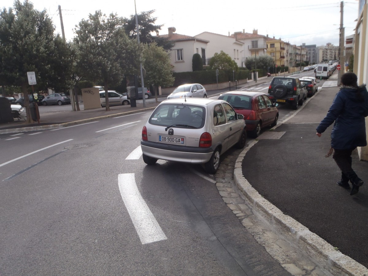 Allant du boulevard Michel Doutes vers l’université, il y a très souvent une voiture de garée sur la bande cyclable, juste dans le tournant de la rue Joseph Pal.