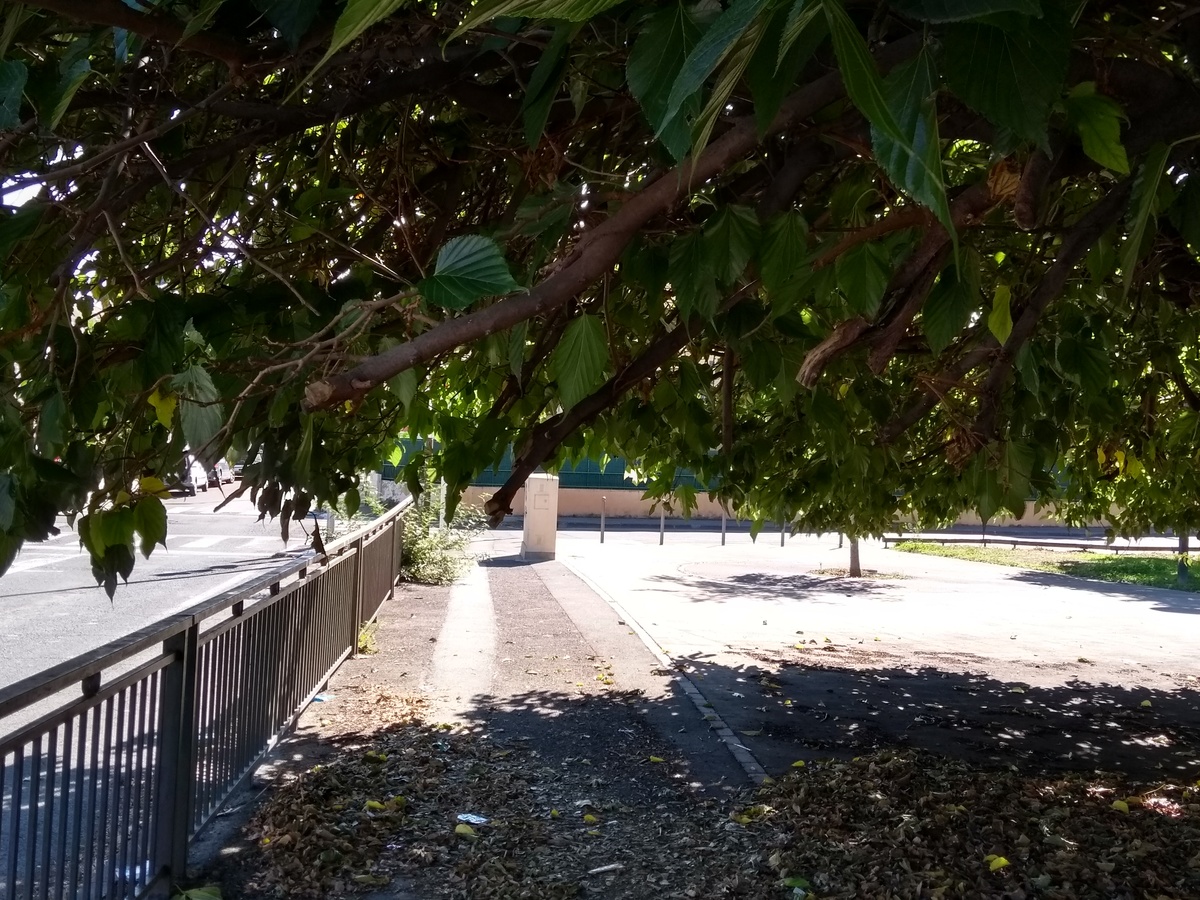 L’arbre a enfin été taillé mais la végétation déborde toujours sur le trottoir.