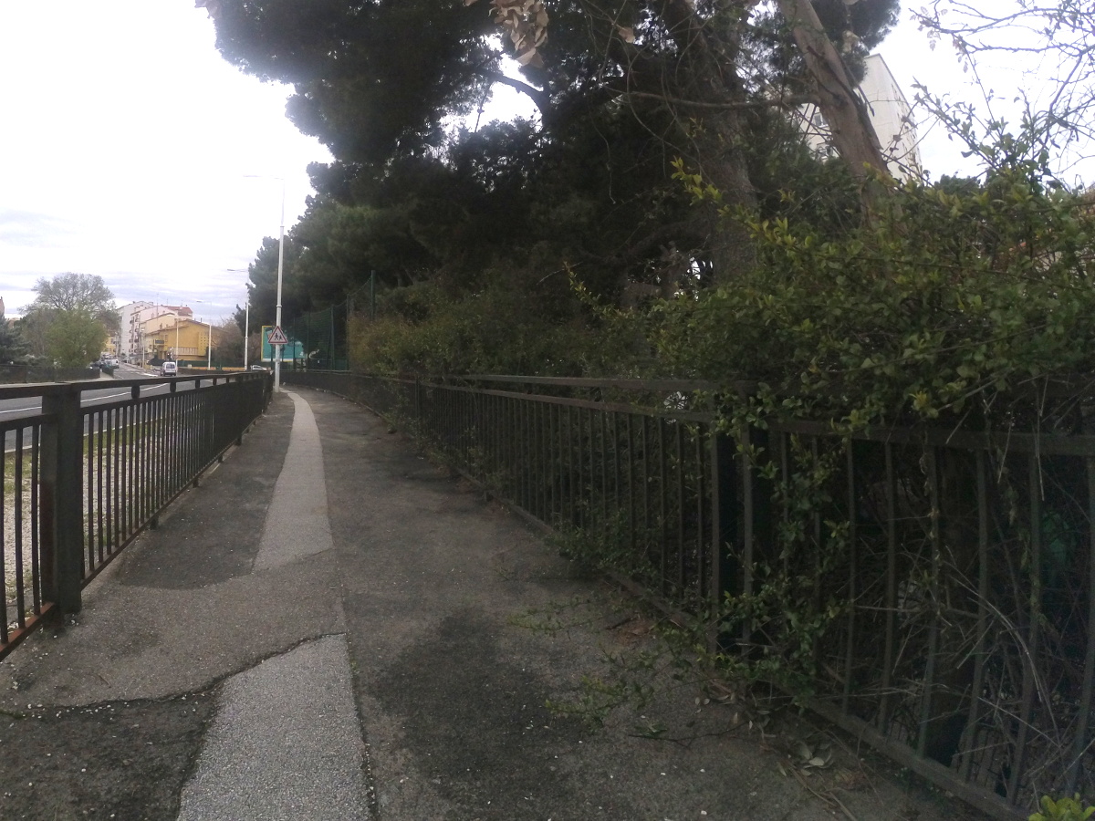Le trottoir/piste cyclable qui longe la rue François Rude en face de l’école Pont Neuf est envahi par la végétation ce qui réduit de moitié sa largeur. Un peu plus loin, une branche d’arbre a été taillé à 1m80 du sol ce qui est dangereux pour les cyclistes et même pour certains piétons.